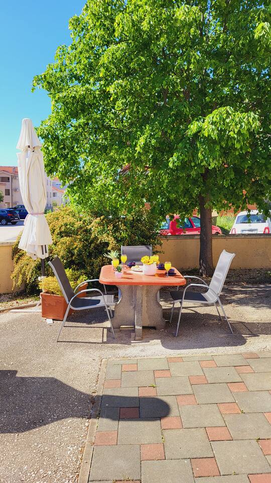 A private terrace, your own BBQ grill, just 500m from the beach, and private parking right in front of the apartment – a rare find in Zadar. You'll enjoy your morning coffees on the terrace, grill dinner on the BBQ, walk to the beach, and park right at your doorstep—come and go with ease. No circling for a spot, no parking stress. Just arrive and enjoy.